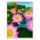 Origineel kunstontwerp van Lotus waterbloemen door ontwerper Carolyn McFann op een wenskaart van kwaliteit voor florale kunstfans.
