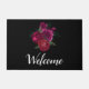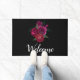 Welkom doormat met een mooi afbeelding van een boeket van magenta en roze bloemen.