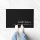 Dit eenvoudige en moderne zwarte doormat zegt "Welkom" in klassieke, elegante lichtgrijze tekst en biedt ruimte voor uw familienaam of bedrijfsnaam.