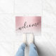 Prachtig gepersonaliseerd deurmat ontwerp met gradiënt faux roze rose goud, wit marmer textuur en elegante kalligrafie lettertype. Personaliseer het product met jouw namen of andere tekst.