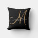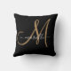 Gepersonaliseerd werpen kussen die een gouden manuscriptinitiaal, en witte manuscriptnaam bevatten. Een trendmatige moderne, minimalistische typografische stijl. Klik op "Pas verder aan om ons eenvoudige ontwerphulpmiddel te gebruiken om een verschillend initiaal of een naamdoopvont te kiezen.