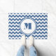 Elegante Monogram Blauwe Chevron Deurmat.