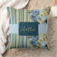 Elegant Monogram Blauw Goud Bloemen Streep Kussen