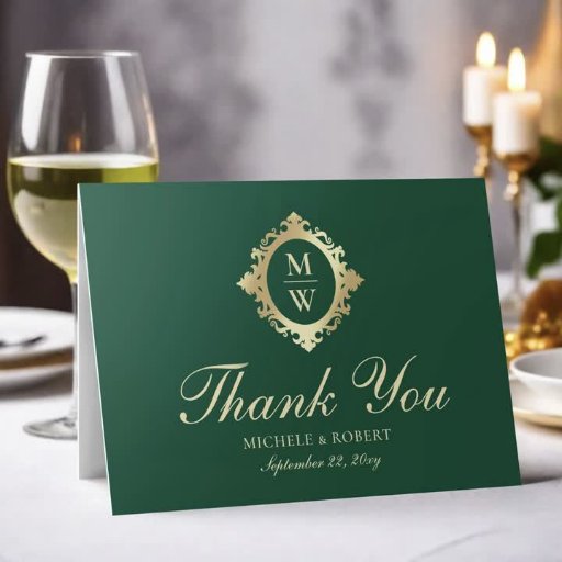 Elegant Monogram Classic Luxe Emerald Green Gold Folie Uitnodiging