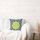 Een elegante blauw quatrefololie met een gevlekte vierkant werpt kussen met een gespleten badge in een levendige lentegroen die je kunt personaliseren door jouw naam en monogrammed initiaal toe te voegen aan. Dit maakt deel uit van het Sailor Blue and Limoen Punch Spring Collectie.