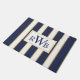 Voeg een vleugje stijlvolle elegantie toe aan uw vooringang met deze op maat gemaakte gestreepte monogram mat. Het eenvoudige ontwerp heeft strepen van blauw en wit met gouden accenten. Personaliseer met een monogram van drie letters in een traditionele blauwe typografie