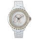 Elegant Monogram R Roos Gold op witte achtergrond, geen echt roos goud wordt gebruikt in het maken. Strass wit emaille monogram horloge