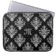 Elegant Monogrammed Black and White Damask Pattern Laptop Sleeve