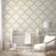 Elegant Nautisch thema Gouden schelp patroon wit Behang
