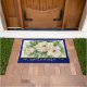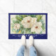 Elegant Navy Blue Magnolia Floral Welcome Script Deurmat