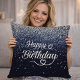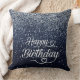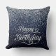 Elegant Navy Glitter Happy Birthday Throw Pillow Kussen