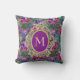 Elegant paarse en blauwgroen pauzes en bloemen buitenhuismeubeldecorator gooien kussen met je monogram/initiaal in een prachtig gouden lijst.