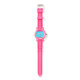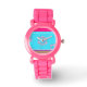 Stomme horloges die geweldige cadeautjes voor meisjes zouden maken. Deze horloges zijn voorzien van een paars en wit bloemontwerp op een lichtblauwe achtergrond met andere versieringen.
