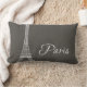 Dit eenvoudige maar elegante ontwerp kenmerkt de Eiffeltoren en het woord Parijs in wit op een achtergrond van het het grijze karakter van houtskool. Een stijlvol modern design voor deze gooikussens voor je bank, bed of stoel.