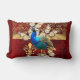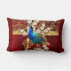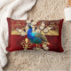 Prachtige chic-verfijnde collage van een pauw-vogel, en vlinders op een diep rood romantisch damaspatroon, met een gouden vloour de lys. OPMERKING: het goud is niet metallisch.