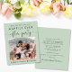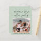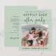 Elegant budgetvriendelijk sage green, behalve de date aankondiging voor een huwelijksreceptie of -feest om je huwelijksreis of privé-bruiloft te vieren. De voorzijde kenmerkt uw foto en "sparen de Datum voor Onze gelukkig Ooit na Partij"in eenvoudige typografie en een kisch manuscript met swashes. Onder uw foto voeg uw voornamen en ontvangstdatum toe. Voor de achterkant, personaliseer uw bericht en voeg de partij of de ontvangst sparen de datumdetails en uw namen in een handtekening-als manuscript toe.