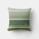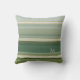 Een moderne ontwerpkussen met een elegant gestreept patroon in dennengroen met pastelturkooiskleuren met kleine gouden lijnen voor roos en uw aangepast monogram (optioneel).