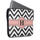 Elegant Pink & Black Monogramed Roos Gold Chevron Laptop Sleeve