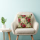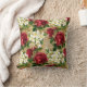 Elegant, oud kerstkerkersidekussen met mooie rode rozen en witte bloemen op een roestbruine achtergrond.