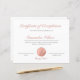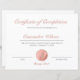 Een elegant en professioneel certificaat van voltooiing. Dit ontwerp biedt klassieke, stijlvolle kalligrafie. Perfect voor schoonheidsacademies, welkome technische trainingsprogramma's, cosmetologiescholen, instructeurs, en meer. Eenvoudig aan te passen ontwerp. Opmerking: roos goud en glitterdetails worden gesimuleerd.