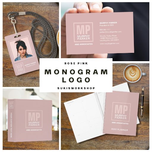 Monogram Logo - Custom Elegant Rose Pink Ontworpen door Suki's World