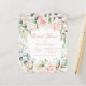 Elegante witte achtergrond met roze & ivoren rozen bloemendouche lijst en vloeiend groen van bladeren & wijnstokken rondom fancy coördinerend roze script bruids waterverf uitnodiging op een papieren blad voor degenen met een budget. Dit is een mooie uitnodiging. Perfect vrijgezellenfeest uitnodigen voor elk trouwseizoen.