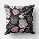 Elegant roze en zwarte Rozen en bladeren Kussen