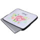 Gepersonaliseerde laptophoes met een prachtige en elegante waterverf, die een bloemkool creëert. Roze tuinbloemen omgeven door licht groen blad. Paarse waterverf achtergrond.