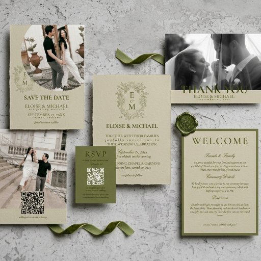 Invite guests to your big day with this Elegant Sage Green Crest Monogram Wedding Invitation! This design features monogram initials with a crest accent and simplicity. Easily customize the template on Zazzle! Have a custom request? Message me!