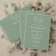 Onze elegante groenbruinbruiloft is voorzien van een botanische kreet die de initialen van de bruid en de groom omringt. Deze elegante huwelijksuitnodiging kan met uw informatie in mooi wit kalligrafiekmanuscript op een sage groene achtergrond worden gepersonaliseerd.
