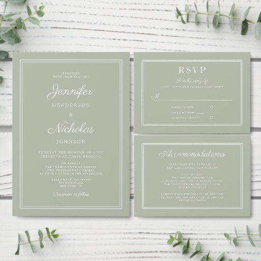 Elegant Sage Green Script Wedding SuiteOntworpen door Maggie B Design