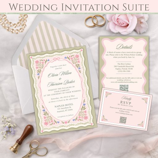 Elegant Sage Green Floral Wedding Invitation SuiteOntworpen door Michele Slade