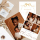 Creëer uw eigen prachtige kerstfoto collage kaart om uw beste groeten te sturen naar uw familie en vrienden! Het elegante en minimalistische ontwerp heeft een donkerbeige/mocha koffiekleurachtergrond met een collage van drie gepersonaliseerde foto's en een elegante typografie: uw 'Merry Christmas'-groet in een chique, echt gouden folie-script en uw familienaam en jaar in elegante gouden typografie onderaan. Op de achterkant staat een aanpasbaar bericht met uw namen. Maak het uniek door de tekst en afbeeldingen te vervangen door op de knop "Personaliseren" te klikken. Eenvoudig maar luxe!