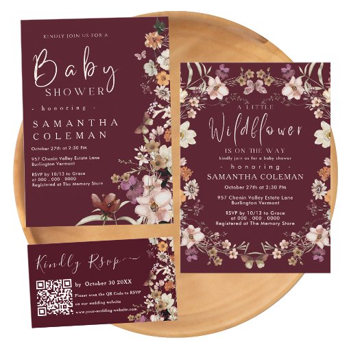 Rustic Boho Wildflower Burgundy Baby ShowerOntworpen door Katrina W.