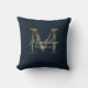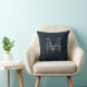 Elegant Script Metallic Navy Blue Gold Monogram Throw Pillow