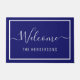 Welkom familie en vrienden bij je deur met dit elegante blauw marinesormat. Pas het aan met jouw naam.