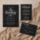 Deze elegante zwart-wit bruiloft save-the-date kaart is perfect voor een moderne bruiloft. Het eenvoudige ontwerp is voorzien van elegante witte kalligrafie op een zwarte achtergrond. De kaart bevat ook een QR-code voor de trouwwebsite op de achterkant.
