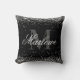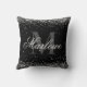 Elegant Silver Glitter Black en White Monogram werpen kussen met een aanpasbare naam van het kalligrafiemanuscript en een gewaagde sjabloon van het monogram. Een schattige accentuil voor een meisjesslaapkamer of studentenkamer.