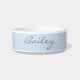 This custom pet bowl features your pet's name in beautiful handwritten script lettering on a stylish soft blue background. Great gift idea.