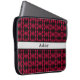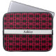 Elegant zwart-rood abstract patroon laptophoes. De tekst op de zilvergordel kan gepersonaliseerd zijn.