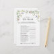 Moderne, elegante vrijgezellenfeest game "wie het bruidst kent" met waterverf zomerbloemen zoals zoete erwten, lupines, snapdraken en nog veel meer, in heldere, somere tinten van roze, lila, lavender, geelbruine en delicate groene botanische bladeren. Geef je vragen een persoonlijk tintje in het zwart, met mooie moderne, met de hand geschreven kalligrafie. Deel van een gecoördineerde suite. De reeks van het uitzicht hier: https://www.zazzle.com/elegant_summer_wildflower_floral_bridal_shower_invitation-256486599269422892 de ontwerper van het contact voor de aanpassing van producten. Copyright Anastasia Surridge voor Elegant Invites, alle rechten voorbehouden.