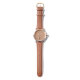 Ik heb gisteren dit horloge ontvangen. Het wijkt echter behoorlijk af van de referentiefoto op de website. Ik had iets zilverkleurigs besteld, dacht ik, maar nu blijkt het vooral goudkleurig te zijn. De afbeelding is ook veel te donker en het horlogebandje is bijna mokka kleurig en ook echt heel anders dan op de foto. Kortom ik ben erg teleurgesteld en heb er in totaal wel €70 voor betaald. Ik wil het graag retourneren en ga hier niet meer bestellen. Heel jammer dit. .