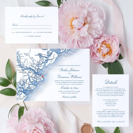 Elegant Tybee Island Georgia Kaart Marinebruiloft
