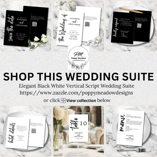 Elegant Black White Vertical Script Wedding SuiteOntworpen door Linda Slocum