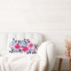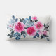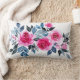 Romantische lumbale kussen, ontworpen met een helder roze waterverf roos, blauw en grijs foliage op een witte achtergrond. De tekst kan worden veranderd.