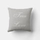 Elegante ware liefde op zilveren Sierkussen. Grijze en witte kussens. De ware liefdestekst kan worden gepersonaliseerd.