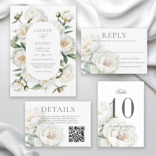 Elegant White Peonies Watercolor Floral WeddingOntworpen door Susan Frazier