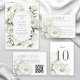 Complete your wedding suite with this elegant white peonies table number card featuring soft ivory white florals and delicate sage greenery. Designed to coordinate seamlessly with the invitation, this table number card adds refined garden-inspired charm to your wedding reception or celebration. Personalize the text template with the bride and groom's names and wedding date. Create a separate card for each table by editing the table number, then add to cart; edit the next table number and add to cart; do this for each table until you have all the numbers needed, then checkout to complete your order.