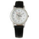Een horloge met een magische illustratie van een mooie witte paardenkop. Omgeven door schattige kleine roze bloemen. Boho elegante sfeer voor paardenliefhebbers.