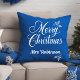Modern Merry Christmas aanpasbare naam gooien kussen. Het ontwerp is voorzien van de tekst "Merry Christmas" in witte typografie met witte hulstbessen en wervelende accentelementen. Het is het beste gepersonaliseerde cadeau voor jezelf, je vrienden, familieleden en zelfs buren. We hebben 35+ meer kerst kussens in ons collectie die je zeker zal houden. Bekijk het en ontvang het beste kerstcadeau met speciale wensen voor uw speciale mensen. vrolijk kerstfeest!